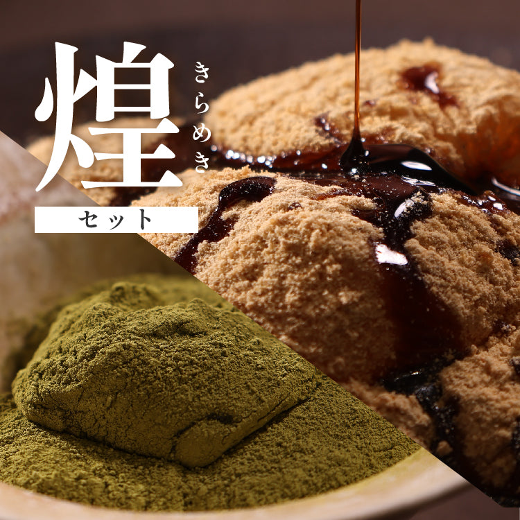 煌(浅煎りきな粉)と煌(宇治抹茶)が両方楽しめる贅沢なセット商品。