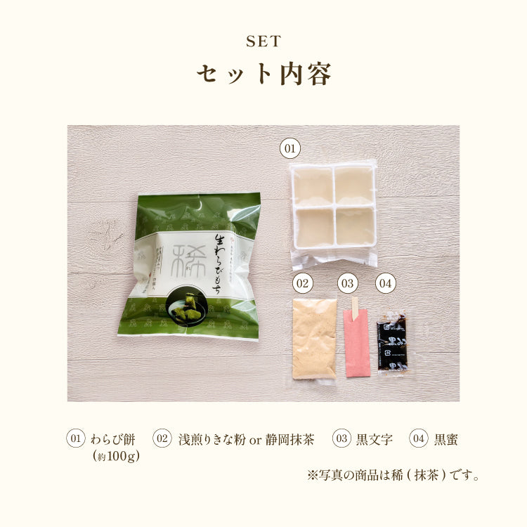 ◼︎ 同封内容:わらび餅 / 静岡抹茶 / 黒蜜 / 黒文字